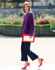 Instagram時(shí)尚伙伴關(guān)系負(fù)責(zé)人Eva Chen用簡(jiǎn)約的粉色大衣搭配白色長(zhǎng)款高領(lǐng)針織裙,輕松制造出層次感,絨毛裝飾的尖頭高跟鞋更具玩味。